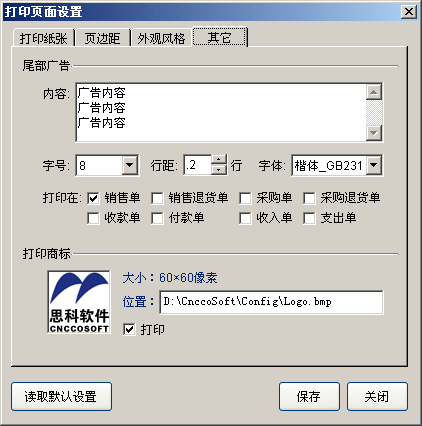 思科商贸通V1.40增强了打印功能,主要有:打印企业LOGO功能、打印广告文字功能、表格宽度自动缩放功能、超宽文字自动缩小并换行功能等。同时将页码及打印时间放在页脚处,不再占用表尾的位置。